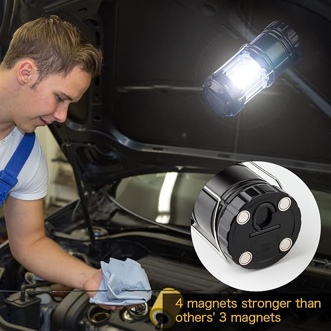 - Magnetic Base: 4 magnets on the bottom of the lantern Incorporate stronger than others' 3 magnets adhering to car or any metal surface, free your hands for doing the work occupying two hands.