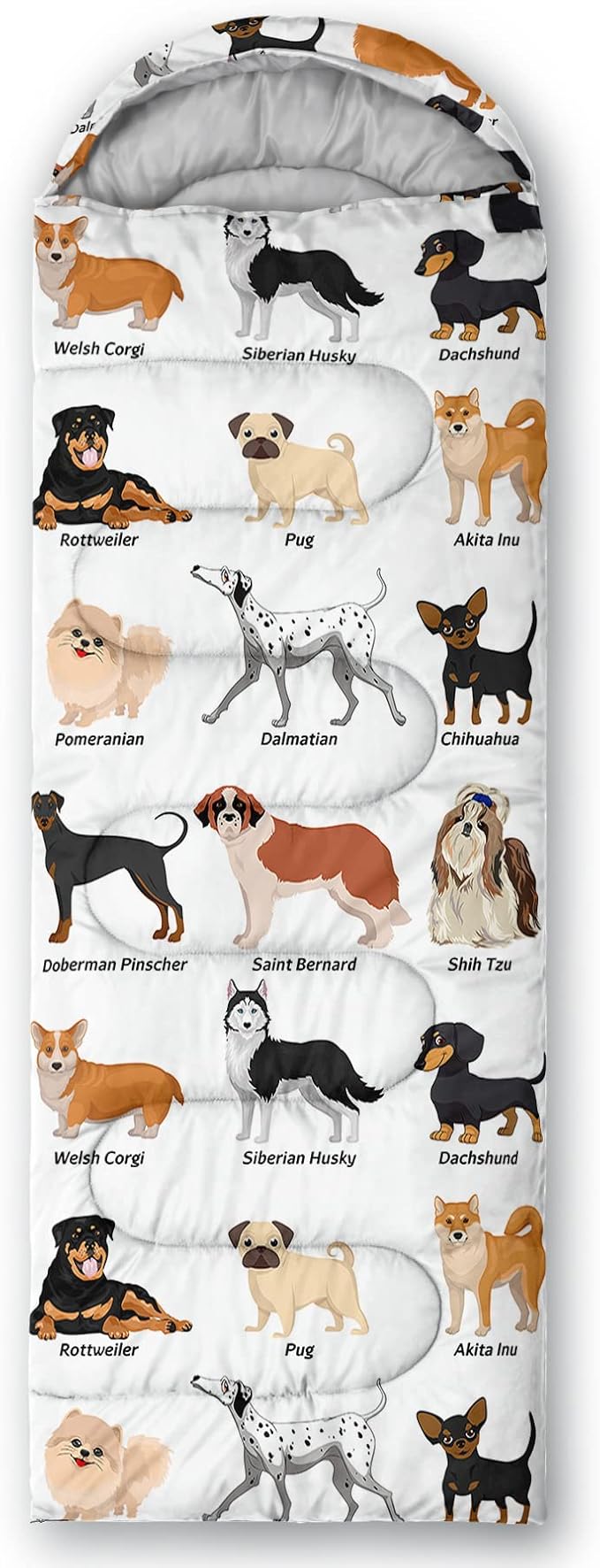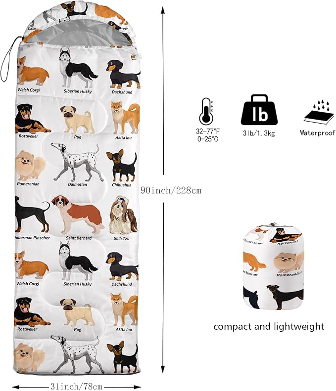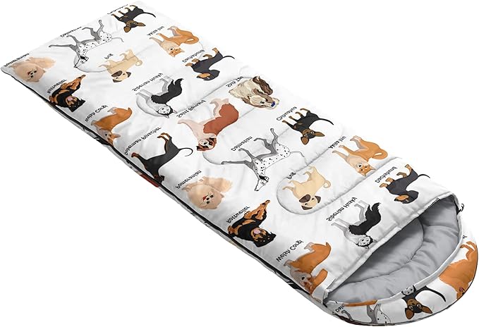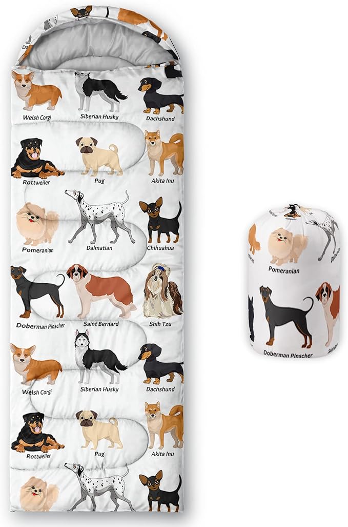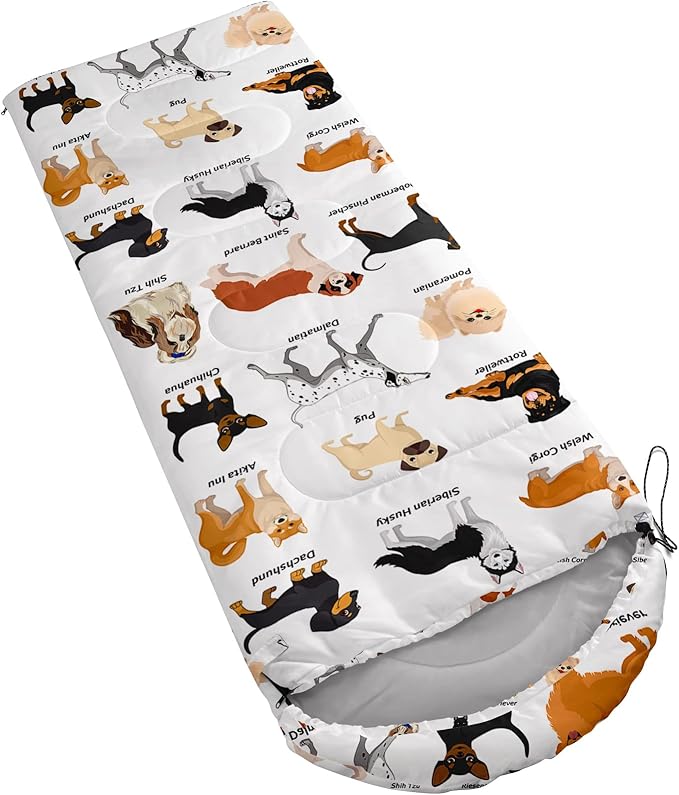 - A THOUGHT OUT DESIGN: Drawstring allows you to tighten hood and keep you warm. The idea of having a zipper at the foot to allow more warm or cool air to enter or exit the bag in different times of the season.Our Cute Cartoon Dog sleeping bags are designed to provide much needed rest after a full day of outdoor activities.