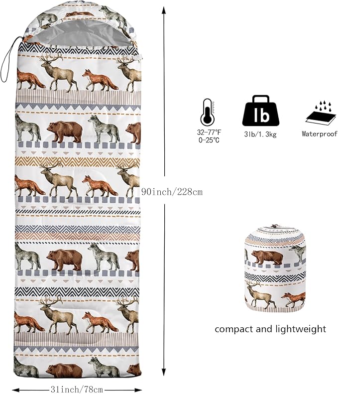 - FITS FOR 3 SEASONS: SIZE - 31 by 90 inches (W x D). Our sleeping bag can be used in 3 seasons with a design temperature of 32℉-77℉(0℃-25℃). These bags also have a weather resistant waterproof design to keep you warm and prevent you from any dampness.