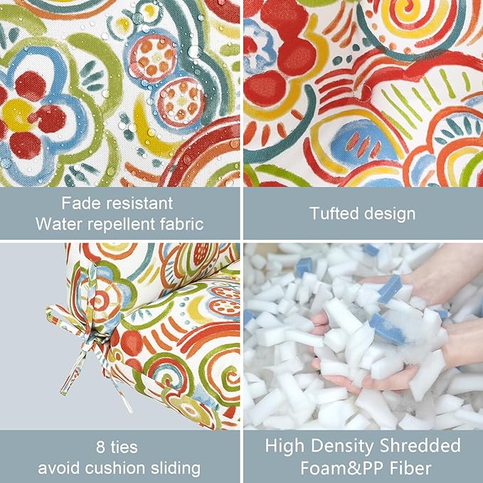 - Tie&Comfort: Strengthened ties keep your cushions securely fastened to the furniture, don’t worry about slipping when you sit on it. Overstuffed soft poly batting will well relief your pressure and bring you great sense of comfort.