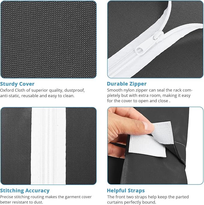- 【Enhanced Convenience & Protection】 The rack includes practical side hooks for hanging accessories and a zippered dustproof cover to protect your clothes from dust and dirt. Its anti-tip over accessories add an extra layer of safety, making it a secure choice for everyday use.