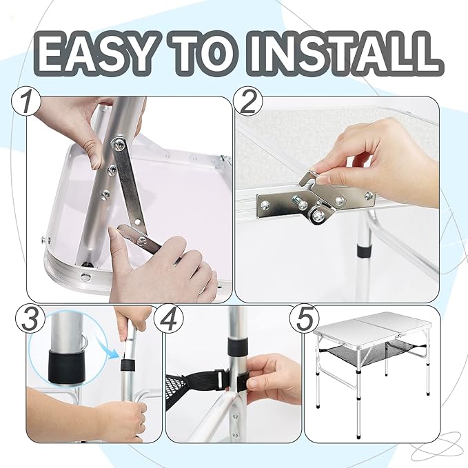 - Installation Quick :Don't want to carry extra installation tools? You can install it independently, just open the folding camping table, insert the legs, and secure the lock. You can set up this desk in a minute while your friends stare at you with envy