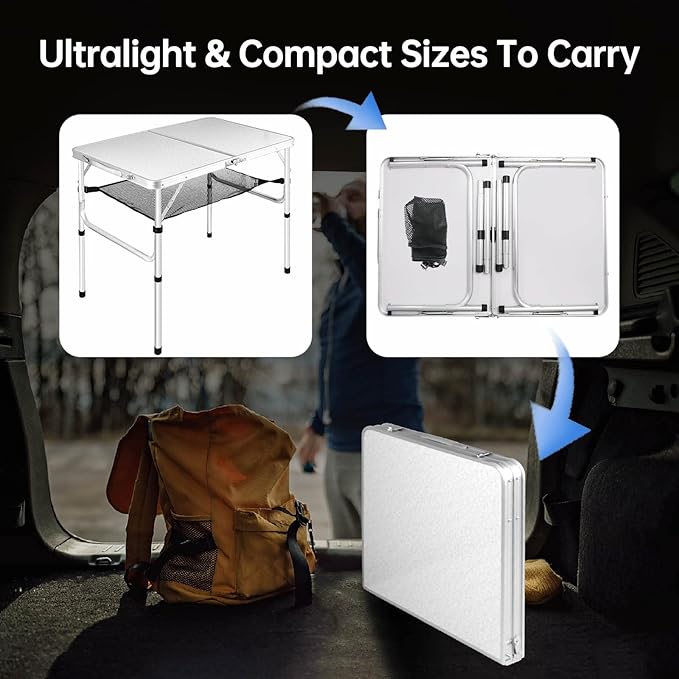 - Durable and Stable :A better table will last longer. Made of high quality ultralight aviation-grade aluminum frame and waterproof MDF table top. Four metal safety locks ensure the stability of this table, so it stays stable all the time.