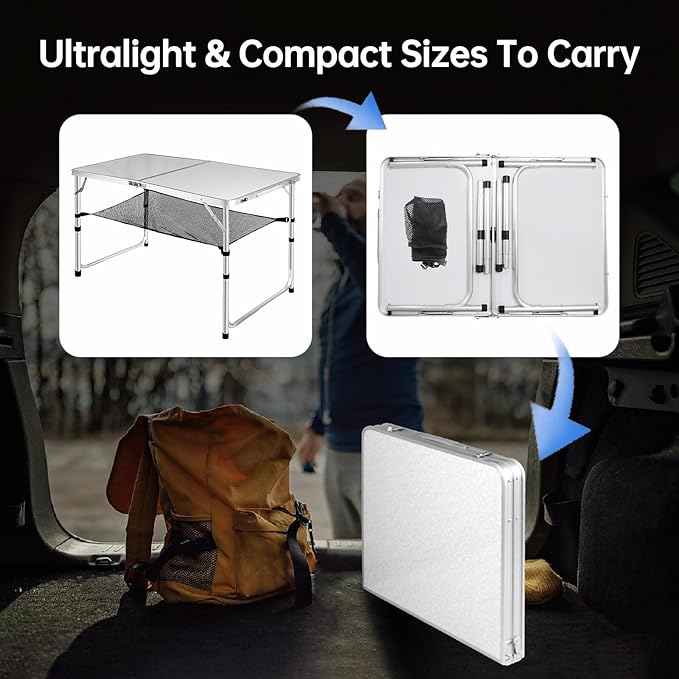- Durable and Stable :A better table will last longer; Made of high quality ultralight aviation-grade aluminum frame and waterproof MDF table top; Four metal safety locks ensure the stability of this table, so it stays stable all the time