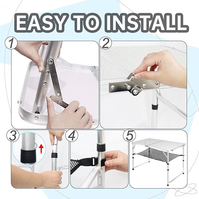 - Installation Quick :Don't want to carry extra installation tools? You can install it independently, just open the folding camping table, insert the legs, and secure the lock; You can set up this desk in a minute while your friends stare at you with envy