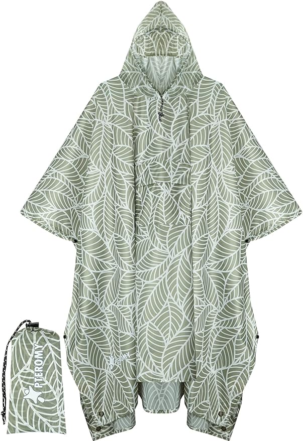 • [VERSATILE APPLICATION] One size fits most. PTEROMY rain ponchos adult is designed breathable and will keep you dry for outdoor activities of any kind such as hiking, camping, picnic, and outdoor game watching. Great gift idea for hunting gear for men, rain gear, or bushcraft gear