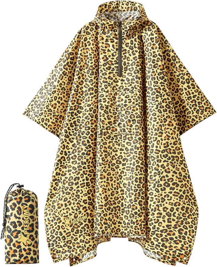 PTEROMY Hooded Rain Poncho for Adult with Pocket, Waterproof Lightweight Unisex Raincoat for Hiking Camping Emergency