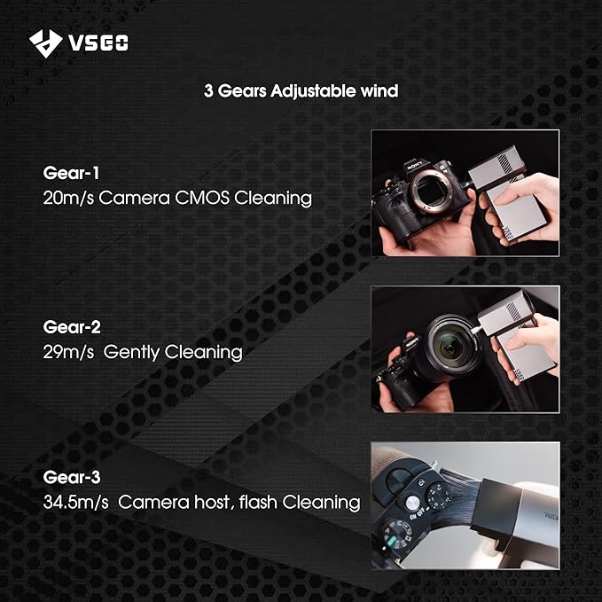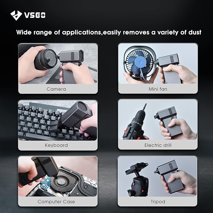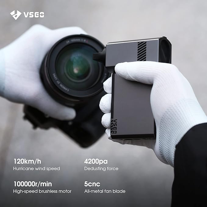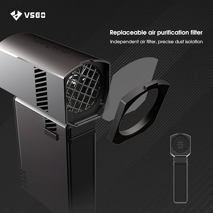 - 【Air Filter & LED Light】: Continuing the air-blown air filtration technology pioneered by VSGO, the air filter can filter 99.97% of dust and pollen in the air to prevent secondary pollution. Built-in LED lighting, the brightness can reach 36LUX, assist in dust removal, illuminate the dead corners, and easily clean the dust in the crevices.