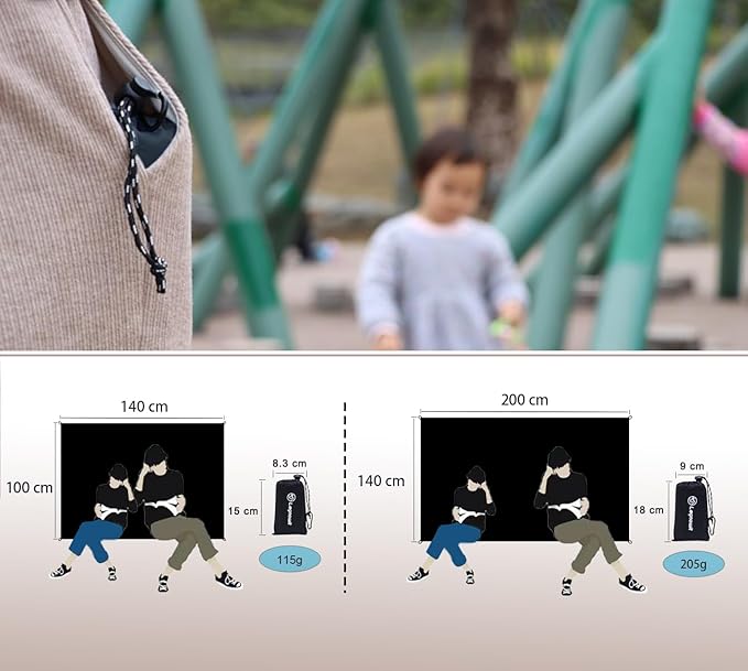 - Compact & Lightweight - This packable blanket is large enough for adult and kid to sit comfortably. This compact picnic blanket can be folded and put in given drawstring bag. It measures only 3.5" x 7", fits purse and small bag well. Hook it onto your backpack, or keep it in your car. It weights 7.47 oz (stakes weight not included), lightweight like a smartphone, a perfect lightweight blanket for outdoor recreation, a good camping tarp as ground cover.