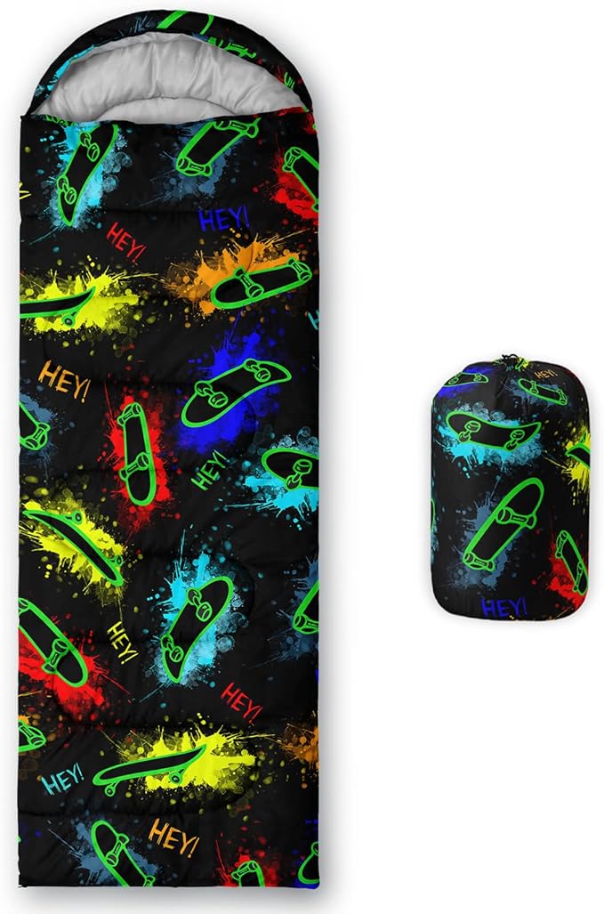- A THOUGHT OUT DESIGN: Drawstring allows you to tighten hood and keep you warm. The idea of having a zipper at the foot to allow more warm or cool air to enter or exit the bag in different times of the season.Our Skateboard Graffiti sleeping bags are designed to provide much needed rest after a full day of outdoor activities.
