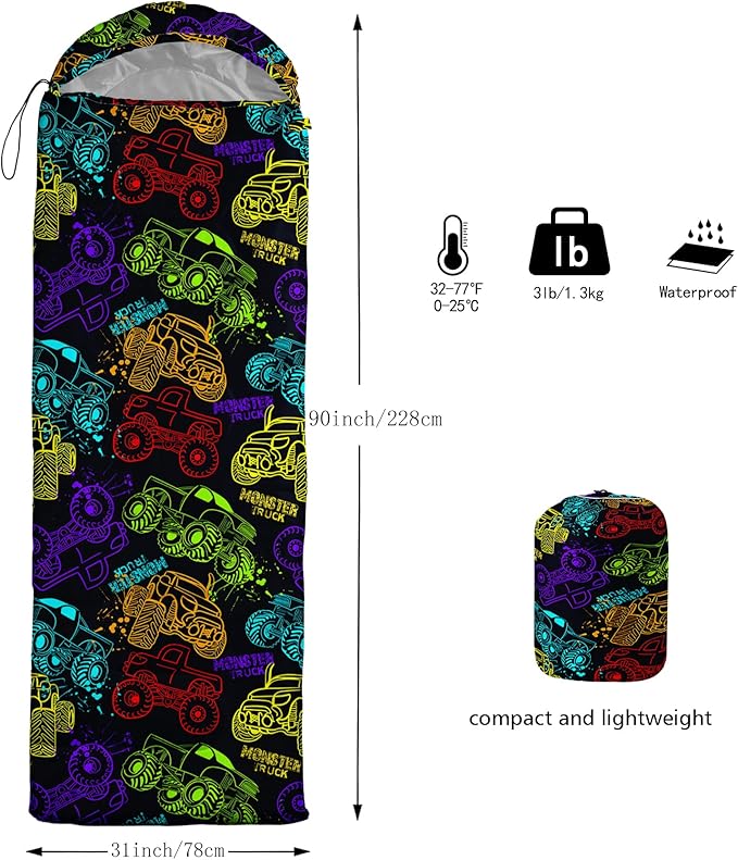 - FITS FOR 3 SEASONS: SIZE - 31 by 90 inches (W x D). Our sleeping bag can be used in 3 seasons with a design temperature of 32℉-77℉(0℃-25℃). These bags also have a weather resistant waterproof design to keep you warm and prevent you from any dampness.