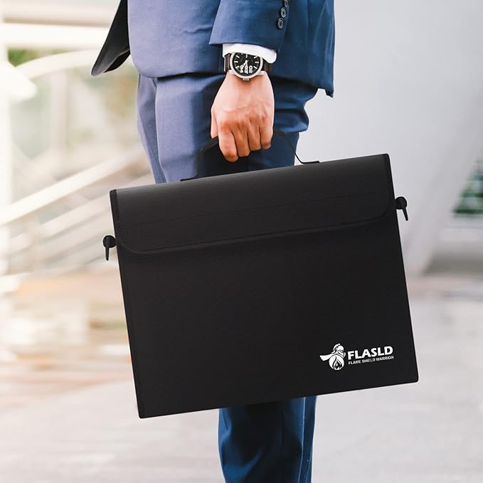FLASLD Fireproof Document Bags, 15x12x5” Large Fireproof & Water Resistant Bag, Holder Home Office Portable Filing Storage for Valuables, Fireproof Folder FireSafe Box for Cash, Passport