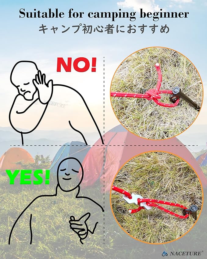 - ๐๐๐๐ฎ๐ผ๐ฟ๐ ๐ผ๐ฟ๐ฒ, ๐๐๐๐ผ๐ฆ๐ฎ๐๐ฒ๐ฑ%โ FUNCTIONAL TENT ACCESSORIES - Donโt stress anymore when youโre out hiking or at the beach and you think your tent is going to be seen rolling away like a tumble weed, because we got you covered. Our hiking tent rope adjuster will help you to protect your tent securely from strong wind and rainstorm so you can finally have your peace of mind.