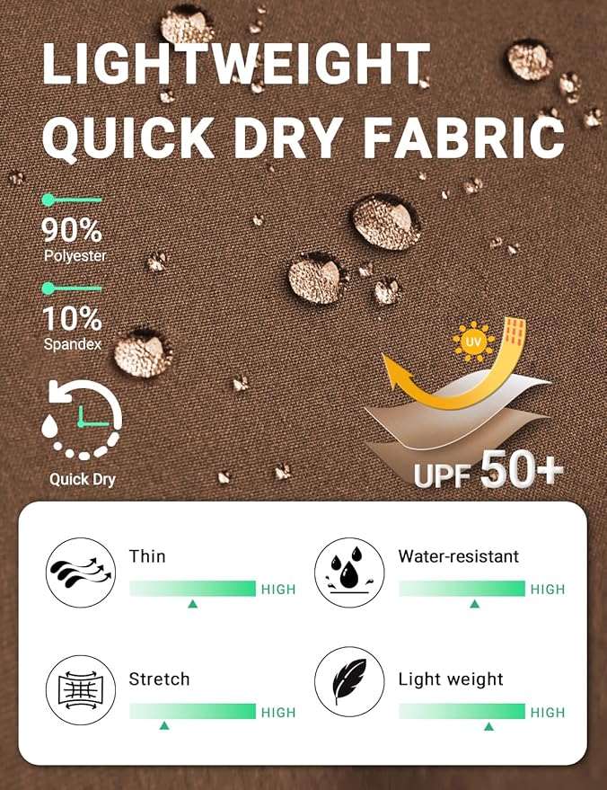 • Elastic Waistband: High waisted hiking quick dry pants use ultra skinfriendly stretchy waistband, elastic waist can adjust freely and reduce bulk,drawstring bartack is more sturdy will not swipe left and right.UPF 50+ sun protection for against harmful ultraviolet rays