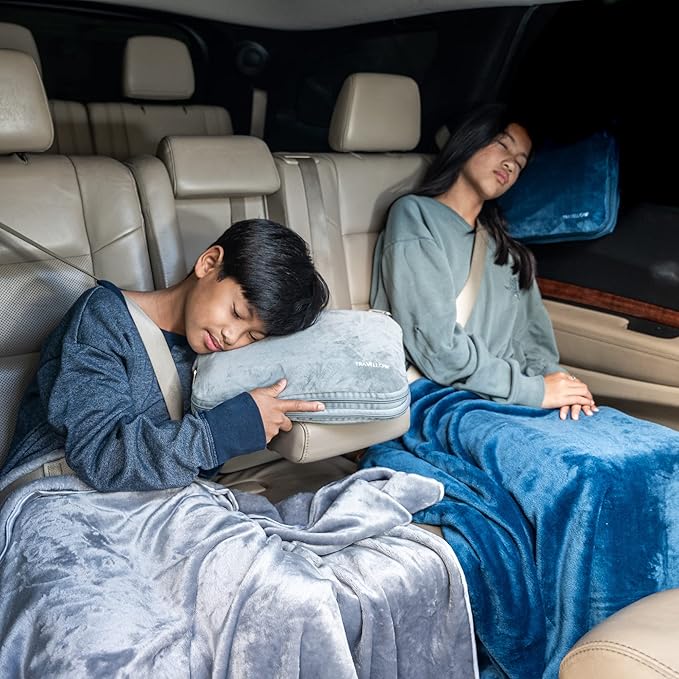 - The Ultimate Travel Gift; Elevate your loved ones' travel experience with the luxurious Travellow airplane pillow and blanket set! It can be used as a tent camping pillow and blanket, airplane travel pillow for kids, airplane blankets for adults, plane blanket for elderly or as kids travel pillow and blanket sets for long car rides! This versatile set is designed to provide unparalleled comfort and warmth. It's a gift they'll cherish and use for a lifetime of memorable adventures.