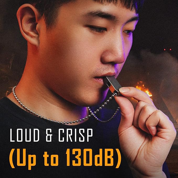 - 120-130dB: Loud and crisp sound can easily attract people’s attention and enough to be heard at long distance. This safety whistle is a great emergency survival tool when go for outdoor activities like hiking, fishing, camping, traveling, boating and backpacking