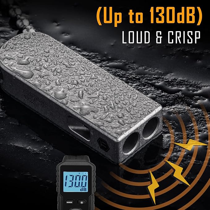 - 120-130dB: Loud and crisp sound can easily attract people’s attention and enough to be heard at long distance. This safety whistle is a great emergency survival tool when go for outdoor activities like hiking, fishing, camping, traveling, boating and backpacking