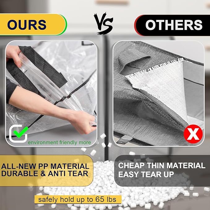 - Versatile Storage or Carrying Usages: as an alternative to storage boxes/plastic storage bins/normal heavy but expensive storage bags, this clear heavy-duty storage bags is flexible for any mission like clothing storage,extra beddings,blanket,comforters,pillows,wardrobe boxes,home stuff organization; stuff carrying and moving to new house/department, college students dorm room essentials. Easy to load and unload all items.