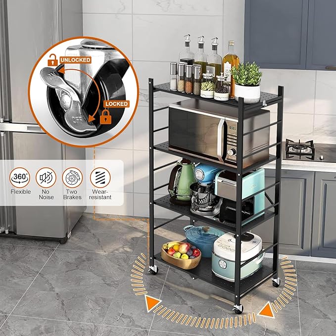 - 5 Seconds to Install: Himix folding Shelves only needs 3 steps after receiving the goods: [open - install wheels or adjust feet - buckle the retainer] you can get a 4-layer shelf! No complex tools and save your time.
