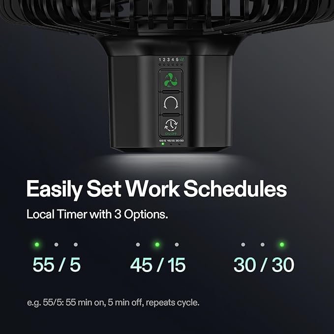 - Powerful & Quiet: Powered by an upgraded dual ball bearing EC motor, this clip fan delivers powerful 320 CFM airflow at a noise level of just 33 dB(A); The local timer provides 3 cycle settings, making it easy to customize air circulation