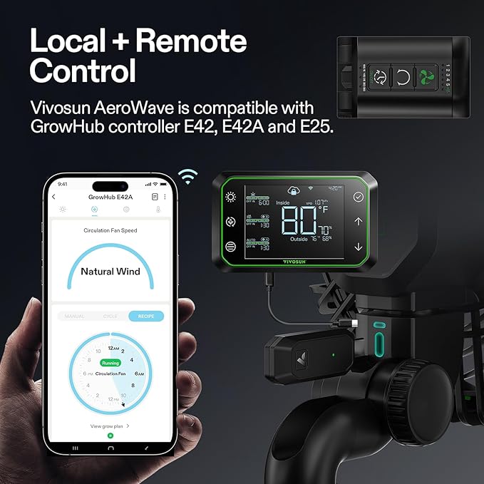 - Smart Control with GrowHub: Compatible with the Vivosun GrowHub E42/E42A/E25 for remote app control; Syncs with SGS (Smart Grow System) to operate with other connected devices and optimize your growing environment