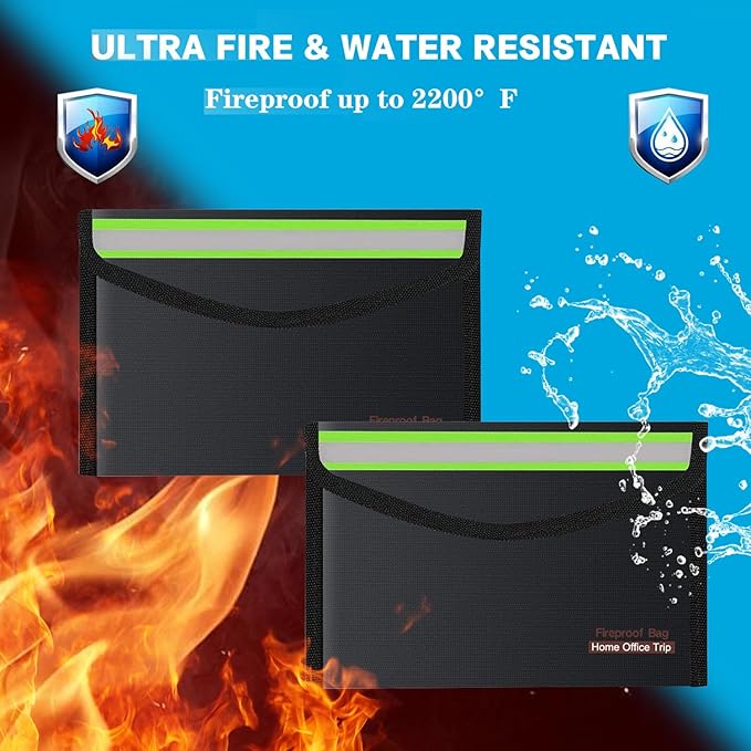 - 【Size&Weight】-- 2pcs 13*20cm Fireproof Waterproof Bag, Fireproof zipper, strong handle add storage security and carrying safety. Not only can you put it in your home, office, car, safe box, storage cabinet, you can also take it to camping, travel and various outdoor activities. Of course, giving it as a Chirstmas gift to your family, customers or employees is also a good choice.