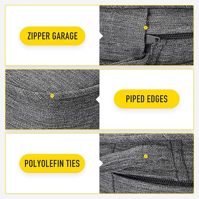 - 【Invisible Zipper Garage | Removable Cover with Ties】Zippers lock to keep a tight closure, stored in protective garages to prevent scratching your patio furniture when closed and offer a seamless look. Removable cover with non slip ties, customizable fit to keep your cushion where you want it.