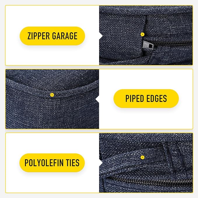 - 【Invisible Zipper Garage | Removable Cover with Ties】Zippers lock to keep a tight closure, stored in protective garages to prevent scratching your patio furniture when closed and offer a seamless look. Removable cover with non slip ties, customizable fit to keep your cushion where you want it.