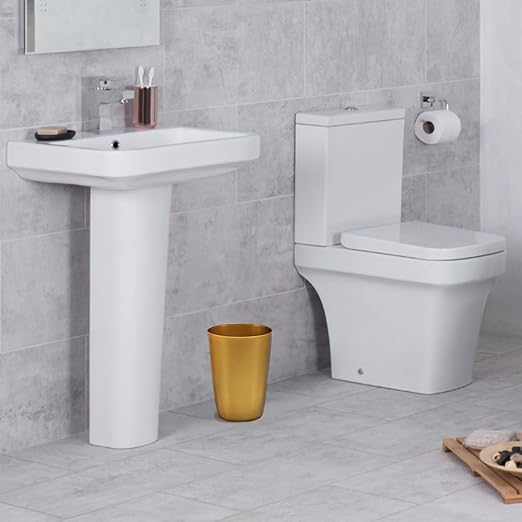 - COMPACT TRASH CAN: The design makes it ideal for small spaces. Perfect for next to toilet, shower, under cabinets, sinks, desks, and other places in need of a small garbage can. The sleek design makes it a perfect office trash can as well