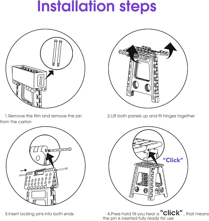 - Tip: If you receive the collapsible step stool and find that there is no pin, you can contact us and we will help you to send you a replacement pin. We provide three months after-sales service, if you have problems, please feel free to contact us.