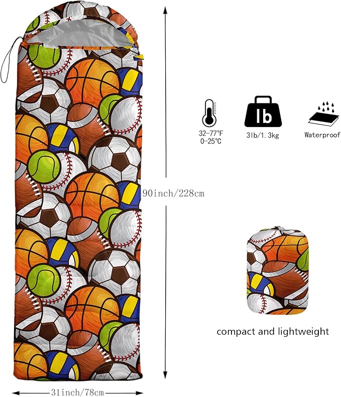 - FITS FOR 3 SEASONS: SIZE - 31 by 90 inches (W x D). Our sleeping bag can be used in 3 seasons with a design temperature of 32℉-77℉(0℃-25℃). These bags also have a weather resistant waterproof design to keep you warm and prevent you from any dampness.