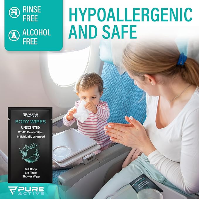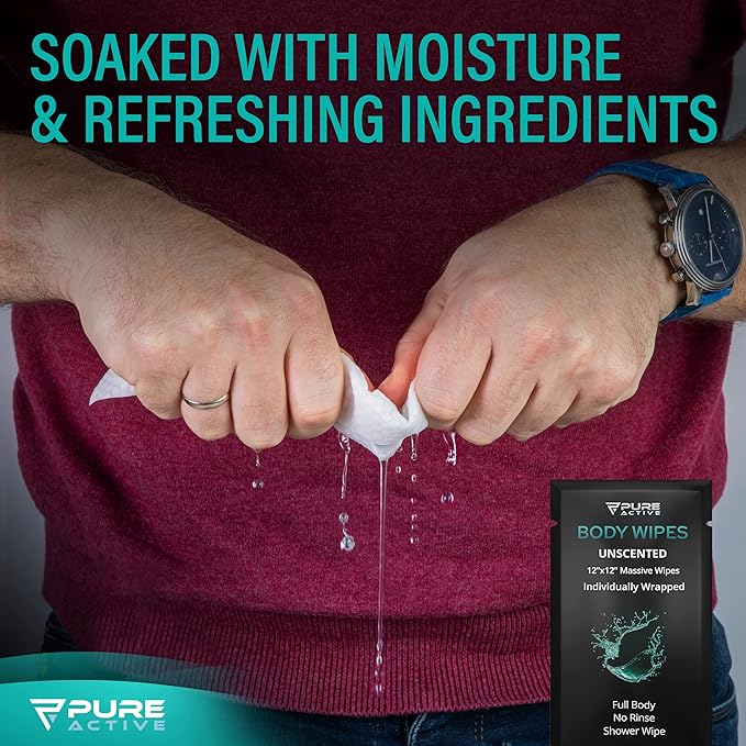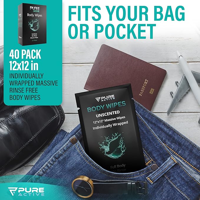 - ๐ฆ PURE ACTIVE 40 INDIVIDUALLY WRAPPED BODY WIPES 12x12 inches - Use our super moist extra large body wipes when you are in a hurry or when there is no available fresh water. Keep your personal hygiene at it's best.