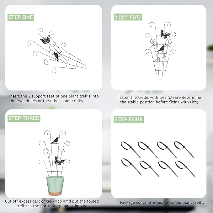 - Butterfly And Bird Design: You will get 4 plant trellis, which can withstand a certain amount of weight; Plant trellis for climbing plants indoor not only provide support for plants, but also add artistic elements to your house, making your room or garden more charming; Small trellis for potted plants is an ideal for plant enthusiasts