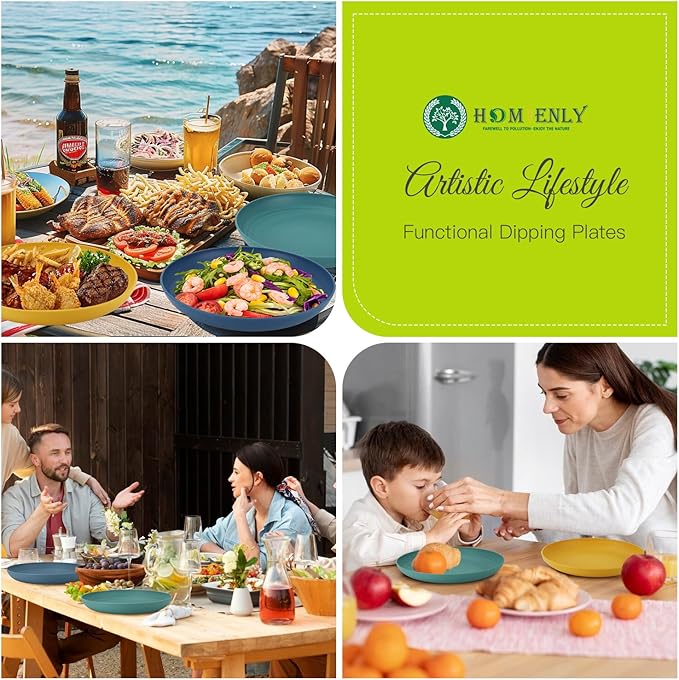 - VERSATILE & REUSABLE: Homienly wheat straw plates are versatile and lightweight, perfect for every meal, whether you're serving pasta, sandwiches, bread and butter, desserts, appetizers, or salads. Whether you're indoors or outdoors, our plates will impress you with their exceptional quality. Our dish plates come in 4 colors. Each color will give you a lot of fun while you use these large plastic plates, and your family will love them too