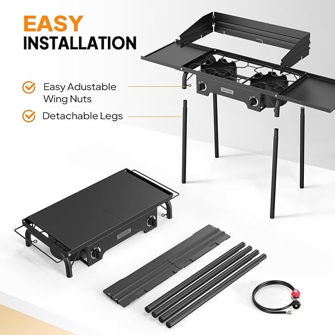 - 【POWERFUL COOKING BUDDY】With durable material & 150,000BTU high output burners to work with, this burner stove makes camp cooking easily and works well for outside; Perfect for outdoor parties cooking, brewing, camping, fishing, etc.