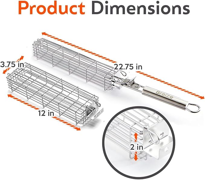 - BUILT TO LAST – Each of the two 13.5 x 2 x 1.4-inch baskets is made from heavy-duty stainless steel that won’t warp or rust, even after tons of backyard BBQs and camping trips.