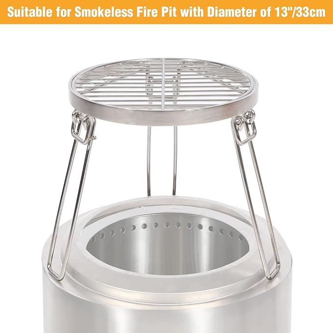 Lineslife Folding Campfire Tripod for Cooking, Portable Camping Tripod Stand with Grill Grate for Solo Stove Bonfire Fire Pit, Dutch Oven, Open Fire, Stainless Steel