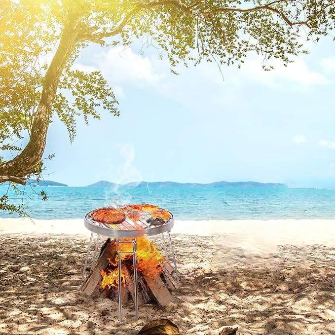 - Durable Material: The campfire grill is made of durable stainless steel, which is sturdy, heat resistant and corrosion resistant, easy to clean. The structure is stable enough when open to use.