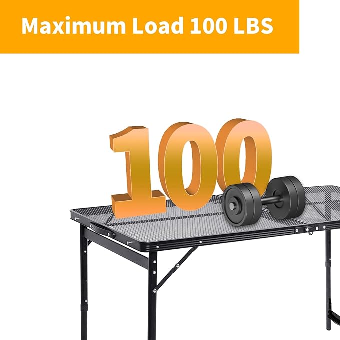 Camping Table 4FT Grill Table Foldable Folding Picnic Portable Stand Mesh 3 Height Adjustable Outdoor Card BBQ RV Black 47.2×23.6 inch