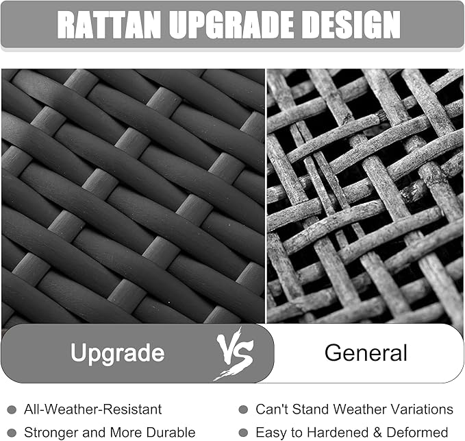 - BUILT FOR THE OUTDOORS: Made of high-quality PE rattan wicker and steel frame, which provides a good support base. Handwoven PE rattan is strong, durable, lightweight, and water-resistant, can withstand changeable weather.