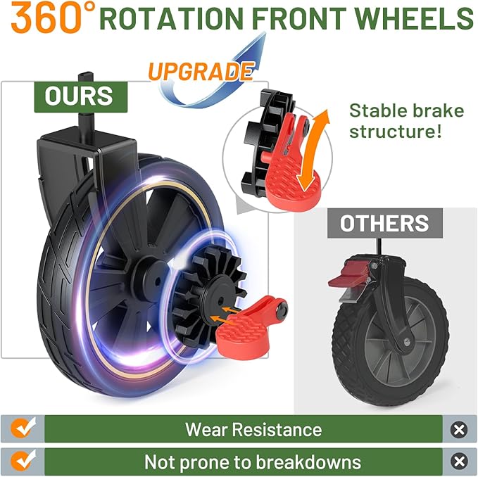 - PUSH&PULL: This folding wagon offers ample hauling capacity; adjustable handle for customized height; 360° swivel front wheels for easy steering and maneuvering