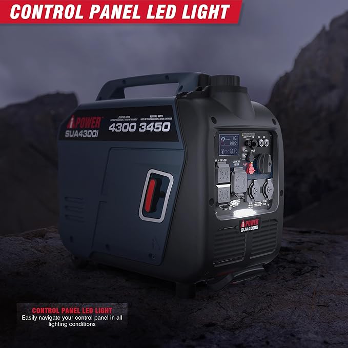A-iPower Portable Inverter Generator Gas, 4300W RV Ready, EPA & CARB Compliant CO Sensor, Portable Light Weight With Telescopic Handle For Backup Home Use, Tailgating & Camping (SUA4300i)
