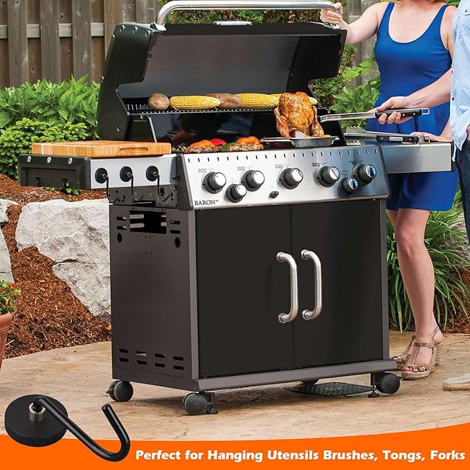 - [Versatile Hooks for Grill Utensils]: Non-scratching magnetic hooks are durable and sturdy with very strong magnets capable of holding whatever tools, apply to grill accessories,grill utensils,and hang various cooking tools, oven mitts, aprons, etc