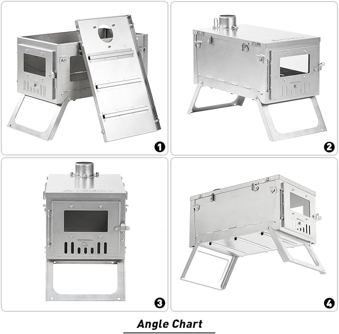 - 【Folding Design】The hot tent stove adopts a folding design, which is convenient for transportation and portability, and reduces the space occupied. Foldable legs provide a stable base for the stove.