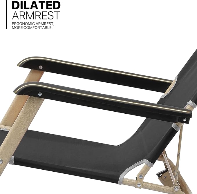 - Comfort - The zero gravity chair is specially designed to effortlessly glide you into an ergonomic position, satisfying your ultimate comfort needs. The armrest of folding lounge chair is thick and contoured. It will serve you whether sitting or lying, outdoor and indoor.