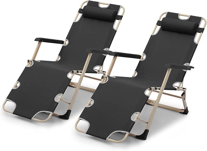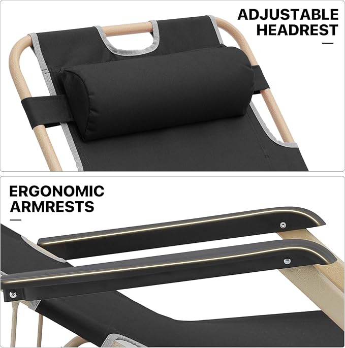 MoNiBloom Patio Folding Lounge Chair Set of 2 Outdoor Lawn Folding Lounge Reclining Lounger Chairs for Poolside Backyard Beach and Camping, 330lbs Capacity