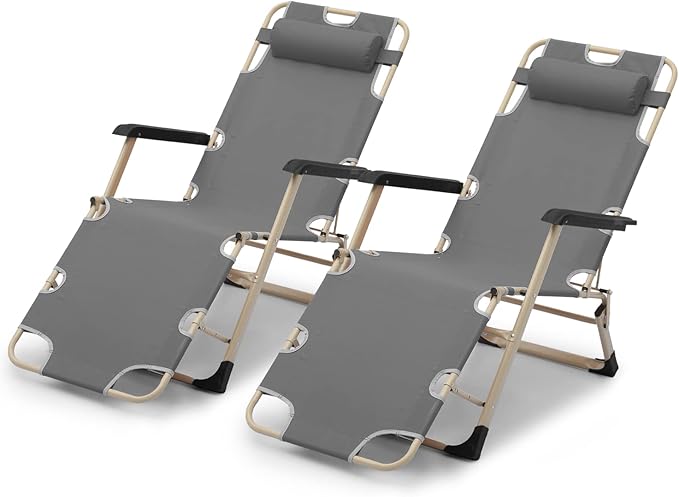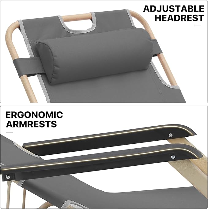 MoNiBloom Patio Lounge Chair Set of 2 Folding Lawn Lounger Outdoor Camp Reclining Chair with Adjustable Headrest for Garden Yard Pool Side, 330lbs Capacity