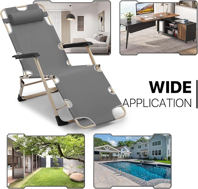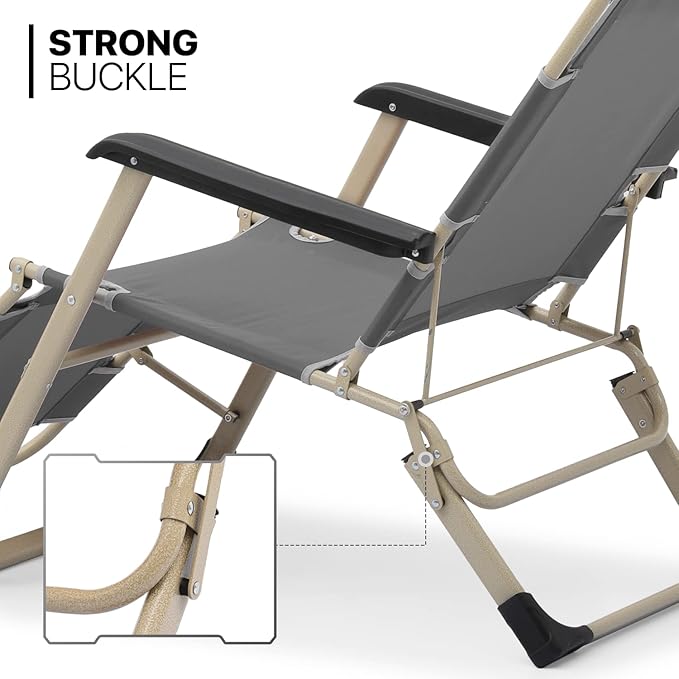 - Comfort - The zero gravity chair is specially designed to effortlessly glide you into an ergonomic position, satisfying your ultimate comfort needs. The armrest of folding lounge chair is thick and contoured. It will serve you whether sitting or lying, outdoor and indoor.