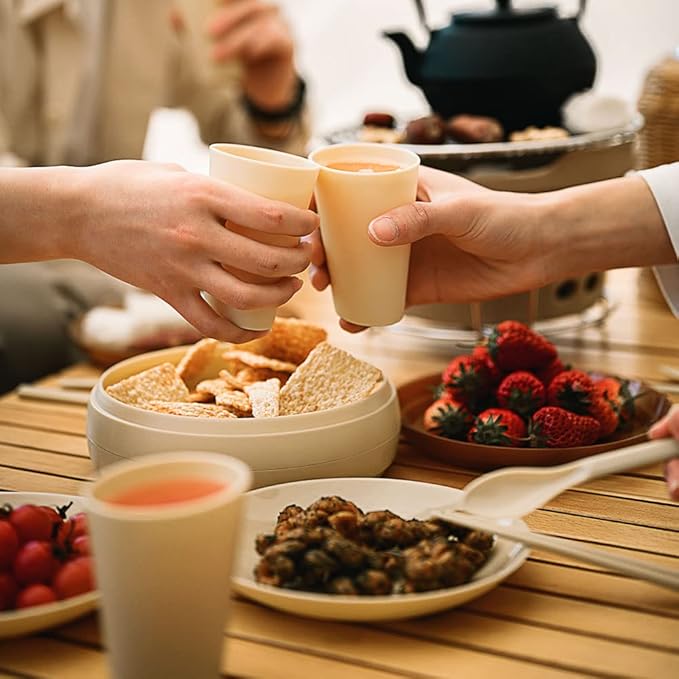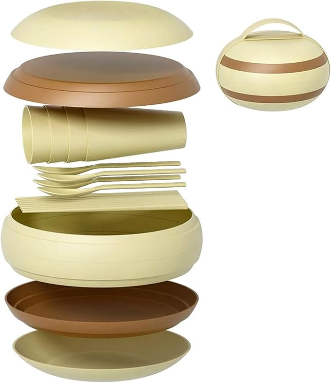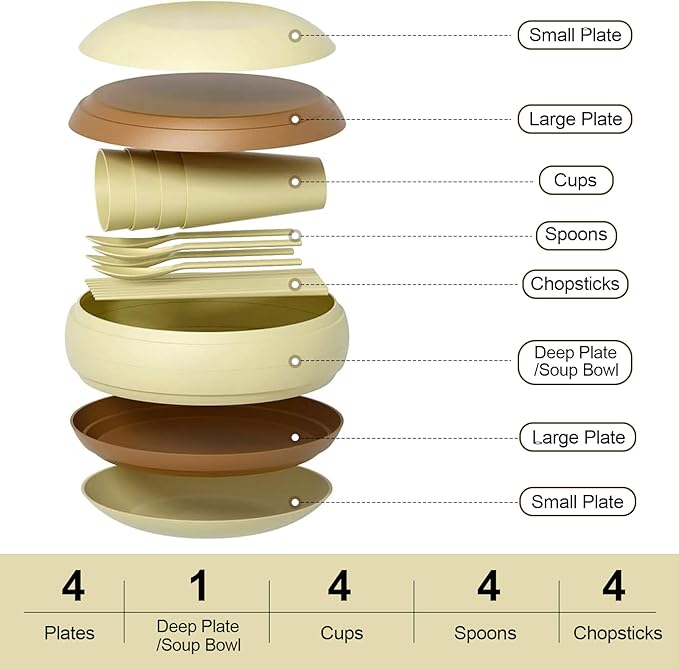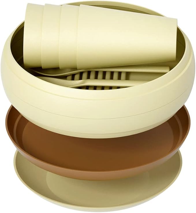 - 【Portable, Lightweight & Durable】Made of BPA-free and food-safe PP plastic, the plastic dinnerware set is unbreakable compared to conventional dinnerware. The camping dishes set can be stacked into one and has a handle for easy carrying.