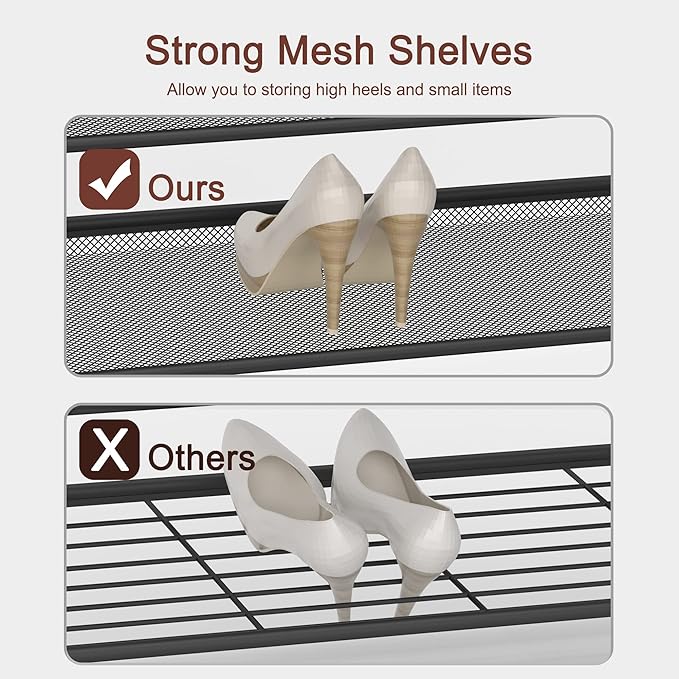 - Sturdy: This high-quality steel shoe rack is designed for long-term use, featuring strong, durable mesh shelves, ideal for any shoe collection.